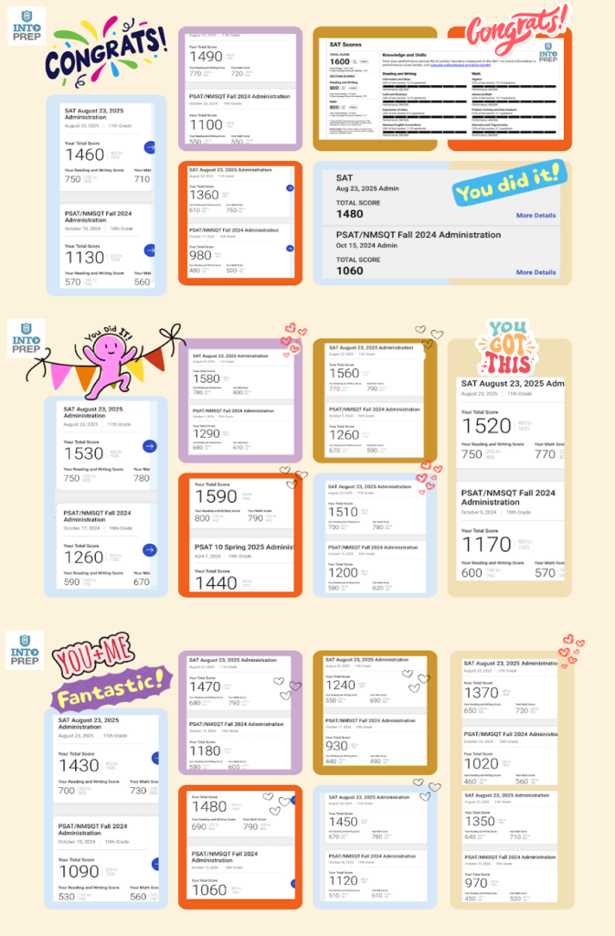 At INTO PREP, success is more than a goal — it’s our tradition. Our dedicated students have once again demonstrated exceptional academic growth, achieving remarkable SAT and PSAT scores that reflect their hard work, discipline, and the proven effectiveness of our test preparation programs.